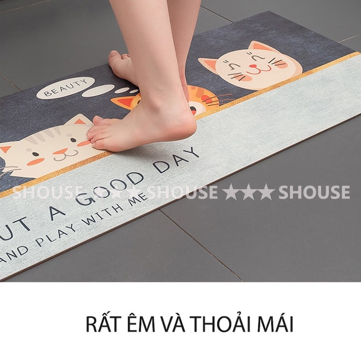Thảm Chùi Chân Lau Chân trải sàn SHOUSE đế cao su hút nước phòng khách phòng tắm 3d hình thú chống trơn trượt cao cấp