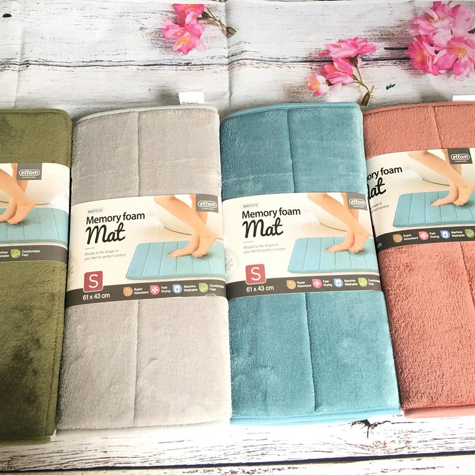 - Chất liệu: Gồm 4 lớp gồm Microfilber, vải không dệt, lớp memory foam, đáy cao su chống trơn trượt. Phần giữa: 13mm mút hút hoạt tính