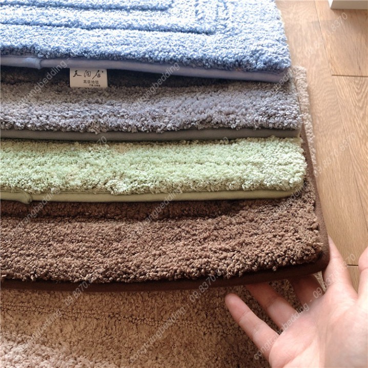 - Chất liệu: bề mặt thảm bằng sợi thô, mặt đáy bằng chất liệu cao su sần tăng ma sát chống trơn trượt.
