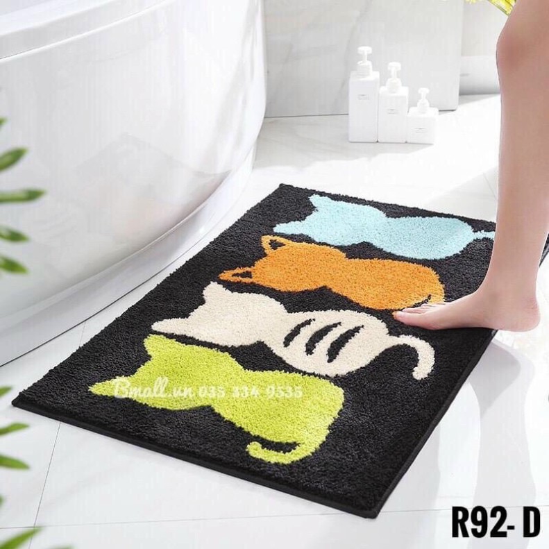 - Chất liệu: bề mặt thảm bằng lông nhung mịn, mặt đáy bằng chất liệu cao su có độ ma sát rất cao giúp chống trơn trượt