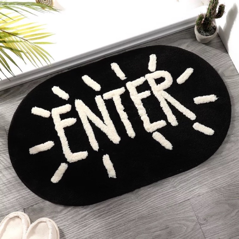Giới thiệu Thảm chùi chân lông dài siêu thấm chống trơn để cửa phòng tắm BATH ENTER phong cách Hàn Quốc hình bầu dục