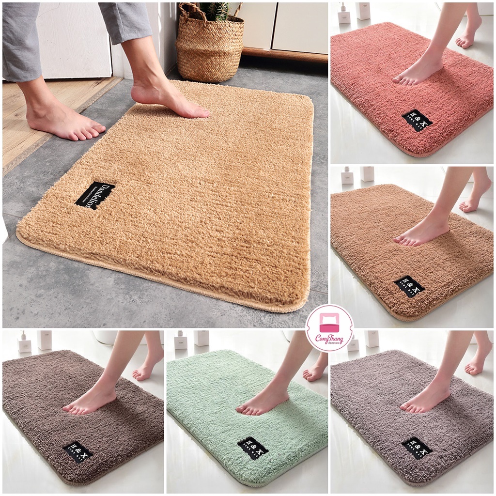 Thảm chùi chân lông len siêu thấm, đế cao su chống trơn trượt tiện dụng giá rẻ - 40cm x 60cm