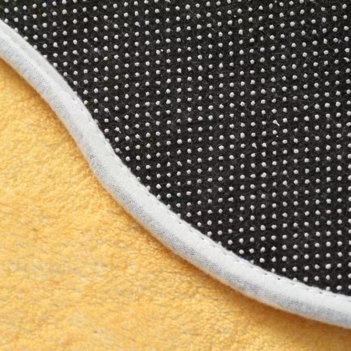 - Chất liệu: bề mặt thảm bằng lông nhung mịn, mặt đáy bằng chất liệu cao su có độ ma sát rất cao giúp chống trơn trượt
