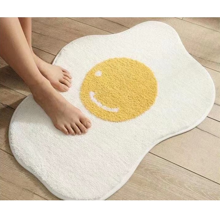 Thảm chùi chân lông mềm siêu thấm nước chống trơn trượt trang trí phòng khách, phòng ngủ - họa tiết trứng
