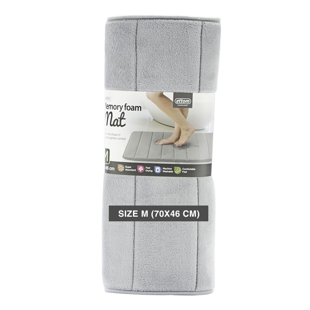 Thảm chùi chân Memory Foam, Lock&Lock, kiểu Stripe, cỡ M, 460*700*15mm Màu xám [MAT511GRY]Chất liệu: Bề mặt: 100% polyester, phần giữa: mút hoạt tính, đế thảm: cao su tổng hợp.