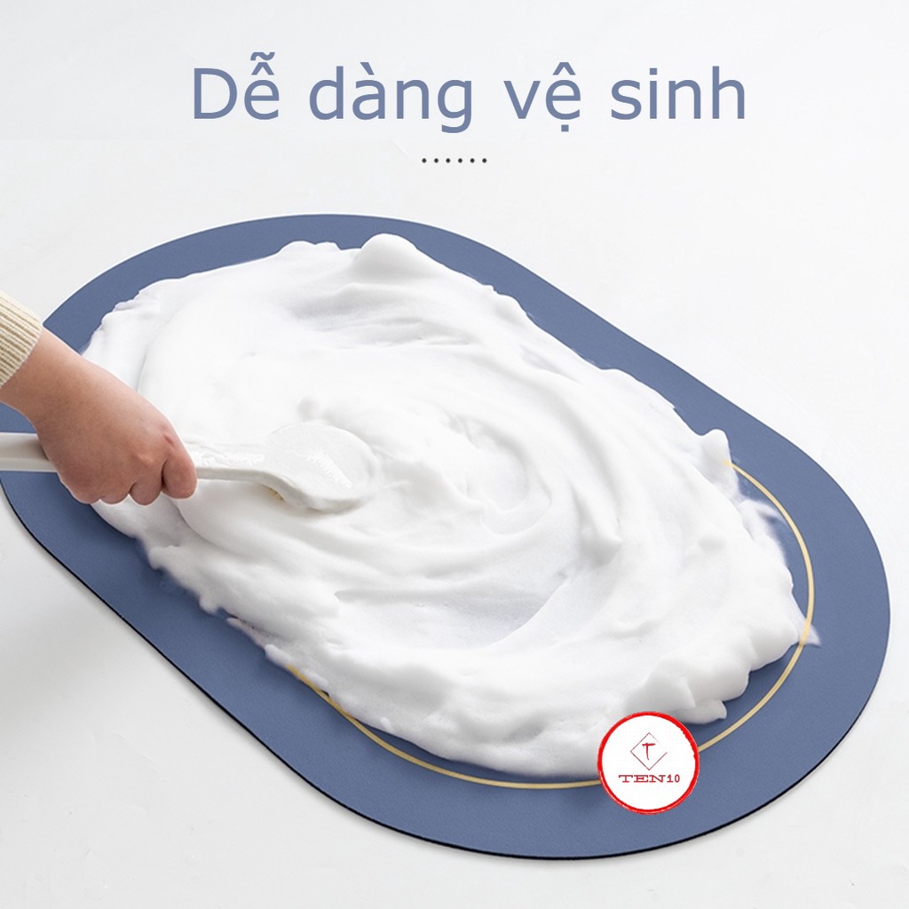 Thảm chùi chân nhà tắm lau dậm chân siêu thấm nước chống trơn trượt thảm trải sàn 4 lớp hình Oval đế cao su sang trọng