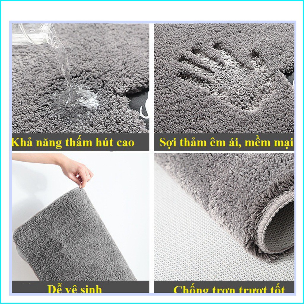 - Thảm chùi chân phòng khách nhà tắm cao cấp với khả năng hút ẩm cực nhanh cùng sự êm ái của thảm, đôi chân của bạn và cả gia đình sẽ được nâng niu một cách trọn vẹn.