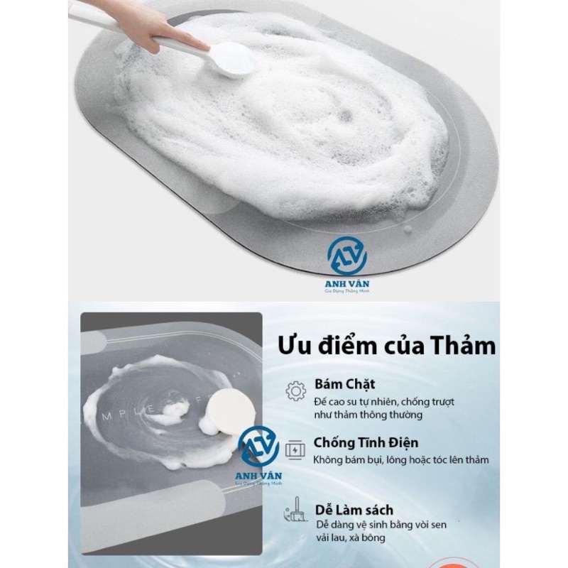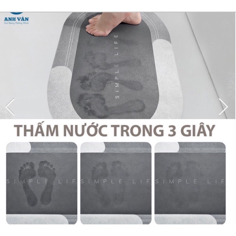 Thông tin sản phẩm:- Chất liệu hóa thạch Diatomite, siêu thấm, chân khô ngay sau 2 cú chạm Kháng khuẩn, không nấm mốc như các thảm thông thường, Không cần giặt, ko cần phơi, vệ sinh cực dễ.