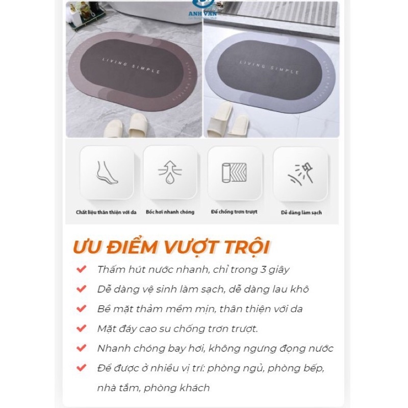 ✔️Không trơn trượt, an toàn cho người già và trẻ nhỏ. Vật liệu Diatomite với những lỗ siêu nhỏ có khả năng tự thấm, hút ẩm siêu nhanh và ngay lập tức giải phóng lượng ẩm này vào không khí.