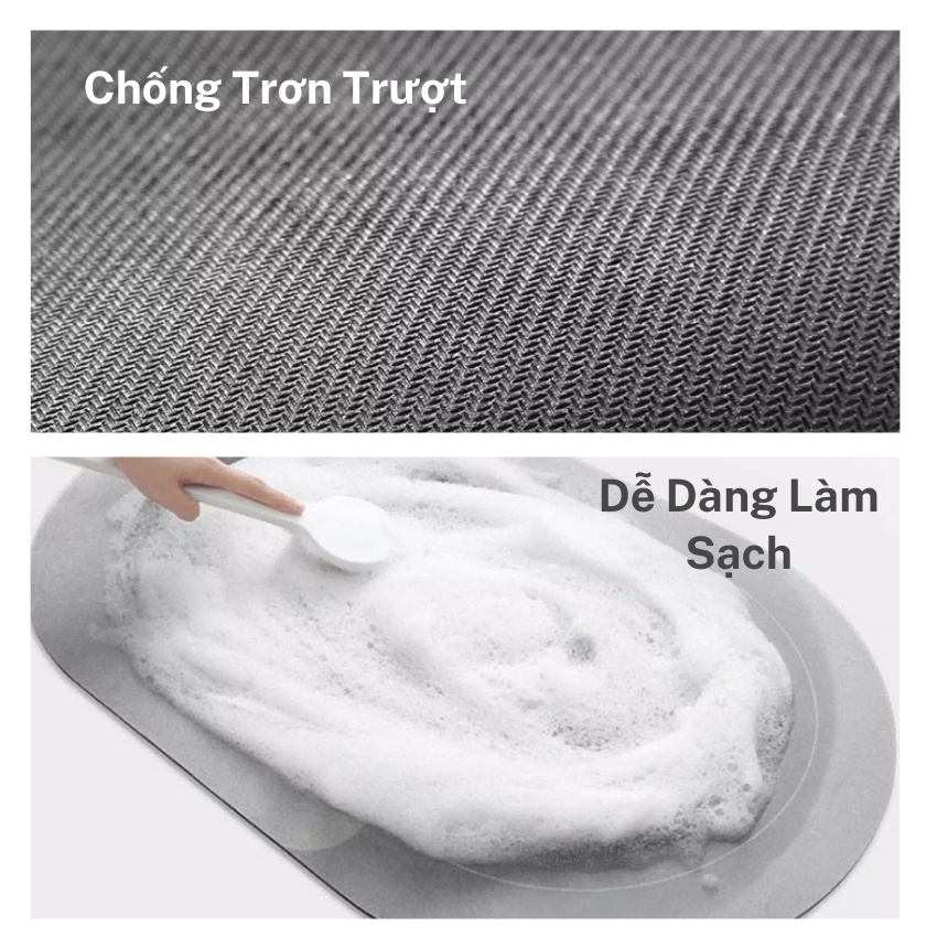 Mặt đáy cao su chống trơn trượt. Nhanh chóng bay hơi, không ngưng đọng nước