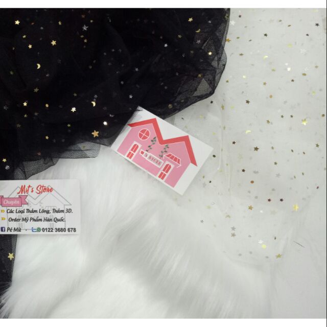 🍀 2 tấm Vải voan kim tuyến ( đen) + (trắng) chụp ảnh, được đính nhữnh ngôi sao, trăng nhỏ nhỏ xynh xynh màu vàg đồng lấp lánh. Vải voan mềm mịn, sờ cực thích luôn, không phải loại voan cứng đâu ạ. 100cmx70cm (lẻ 50k/tấm)