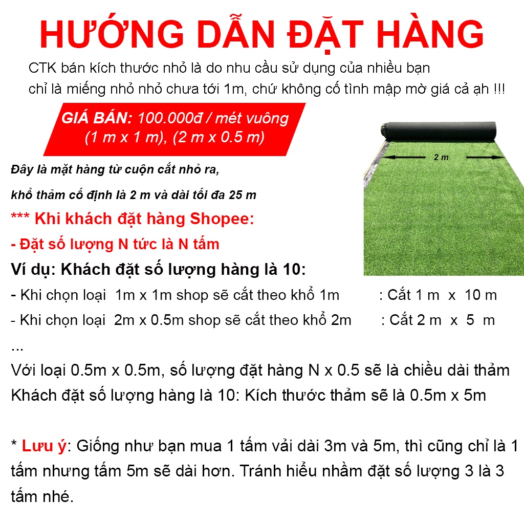 - Mặt hàng thảm cỏ tấm giá rẻ nên không được bảo hành.
