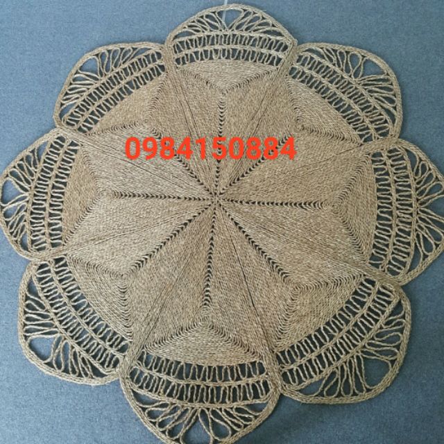 Thảm cói được đan thủ công bằng cói chẻ dóc 3. Kỹ thuật đan múi hoa tinh tế, cẩn thạn, tỉ mỉ từng đường đan.Thảm cói rất an toàn cho người sử dụng, dễ vệ sinh có thể kết hợp với các style chụp ảnh.