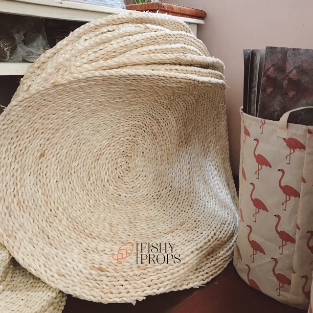 Thảm cói lục bình đường kính 80cm .Cói đan xương cá cực kì trendy. Thích hợp chụp ảnh sản phẩm quần áo, các phụ kiện thời trang như mắt kính, túi xách