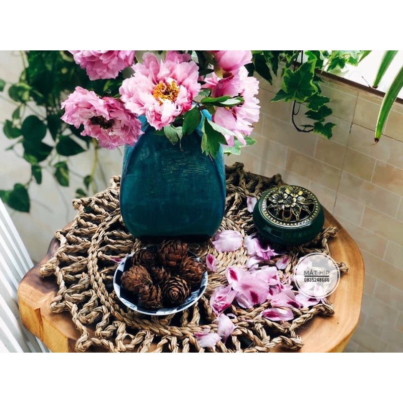 Thảm Cói tròn d38cm hình mặt trời dùng để decor bàn ăn, lót bình hoa, treo tường giá siêu rẻ