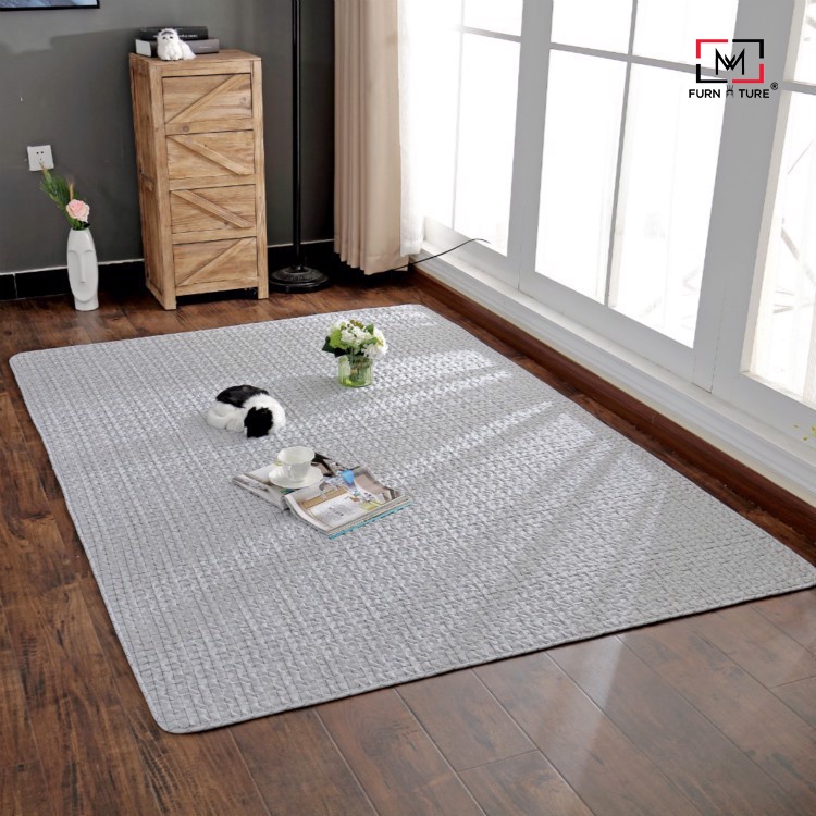 Thảm cotton trải sàn trang trí màu trơn caro hiện đại thương hiệu MW FURNITURE
