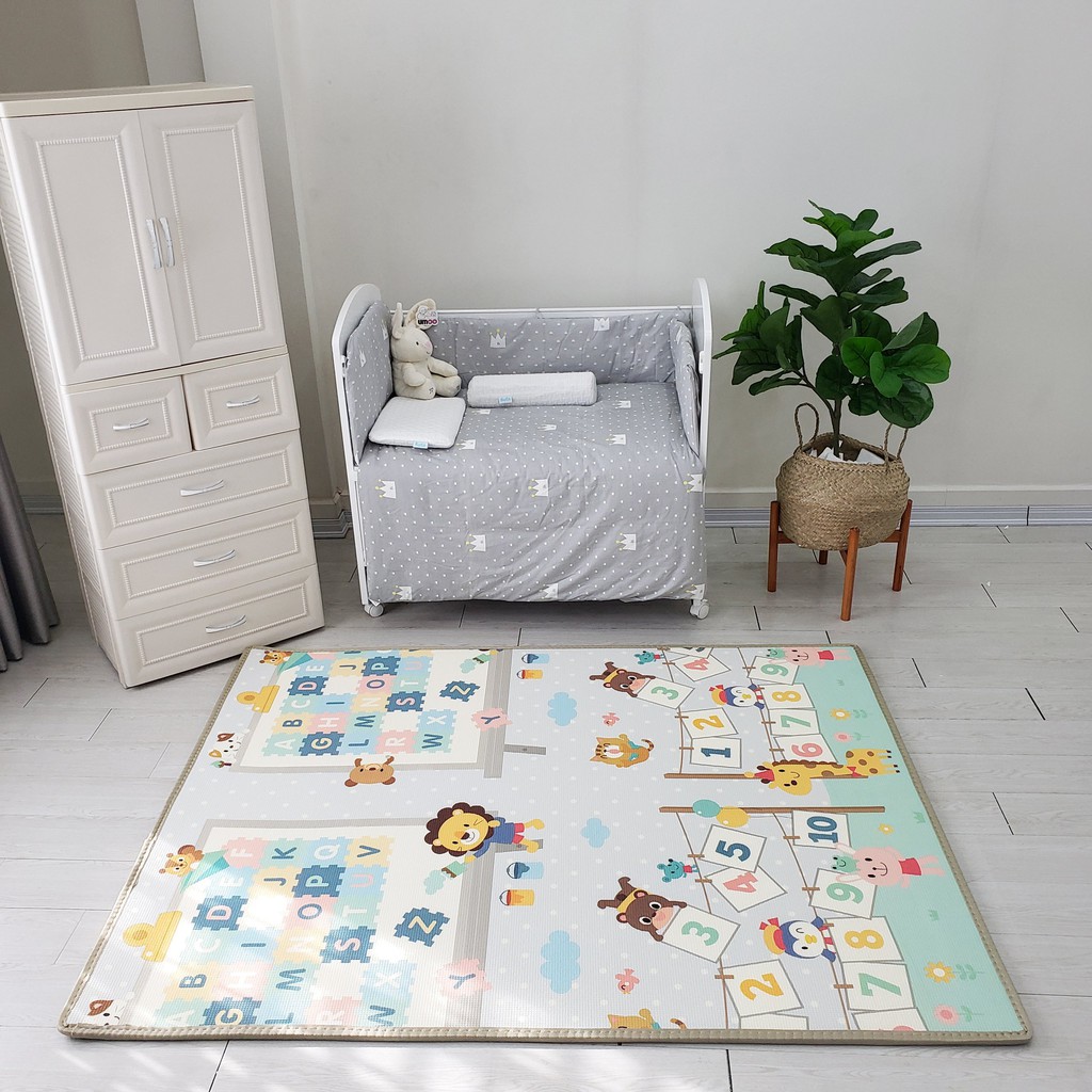 - Chống va đập, chấn thương cho bé rất tốt. Với độ dày 1.5cm bé con có không may nghịch ngã cũng không lo đau như chiếu. Tập đi, tập bò êm ru.