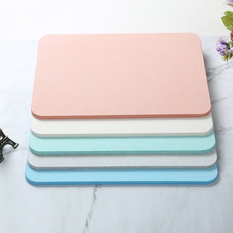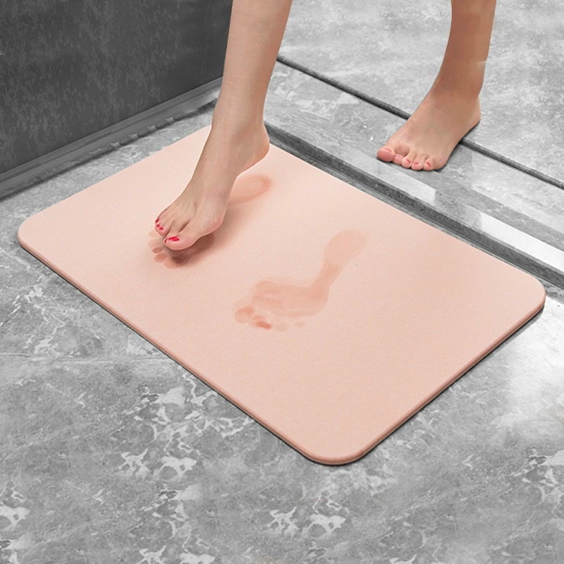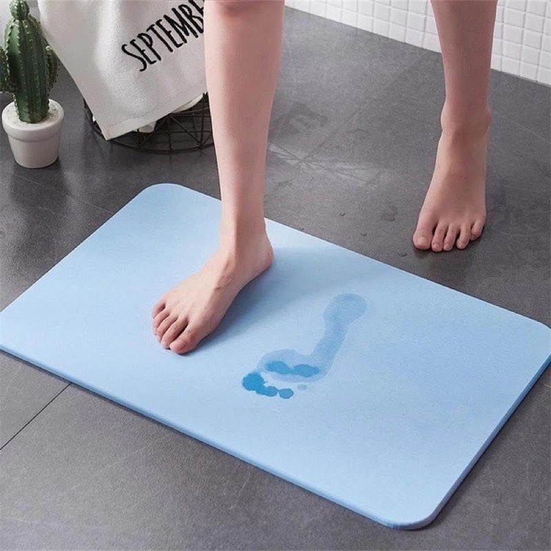 - Thay thế cho tấm thảm vải truyền thống, dùng để thấm khô nước trên bàn chân sau khi ra khỏi phòng tắm. Thành phần cấu tạo từ vật liệu hóa thạch Diatomite có khả năng siêu thấm nước và bay hơi nhanh giữ cho bề mặt thảm luôn khô ráo