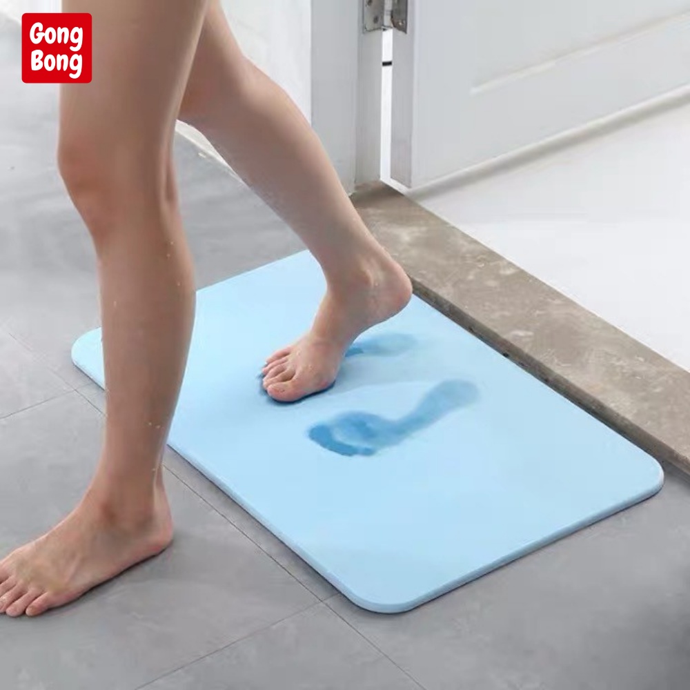 - Siêu thấm hút: Đặt đôi bàn chân ướt lên tấm thảm cứng, nước trên đôi bàn chân sẽ được thấm hút hoàn toàn vào thảm do vật liệu diatomite có hàng vô số lỗ nhỏ rỗng thẳng đứng hút và thải ẩm vào không khí, đôi bàn chân được hút khô rất nhanh.
