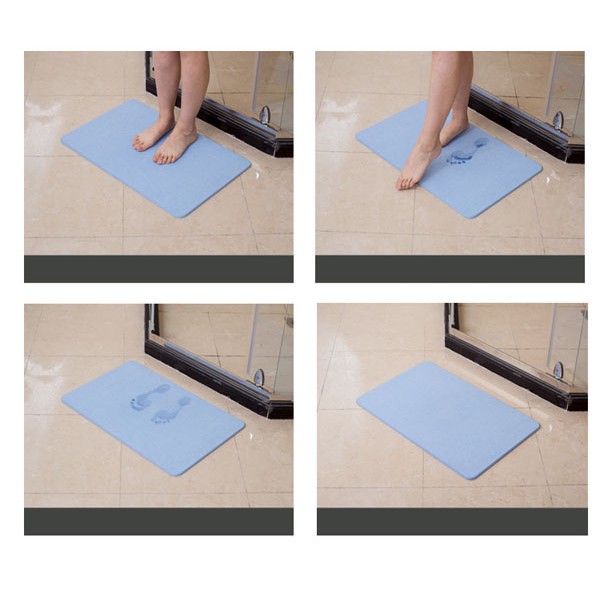 - Thay thế cho tấm thảm vải truyền thống, dùng để thấm khô nước trên bàn chân sau khi ra khỏi phòng tắm. Thành phần cấu tạo từ vật liệu hóa thạch Diatomite có khả năng siêu thấm nước và bay hơi nhanh giữ cho bề mặt thảm luôn khô ráo