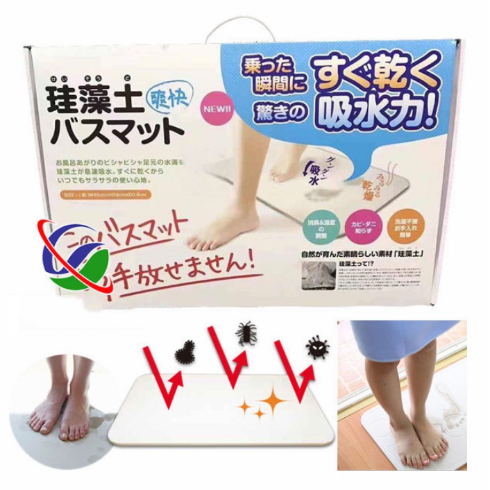 ✅ Dùng để thấm khô bàn chân khi ra khỏi nhà tắm. Khả năng siêu thấm hút từ thành phần diatomite giúp chân ráo nước ngay khi đứng trên mặt thảm. Nước ở bàn chân sẽ thấm hoàn toàn vào thảm cứng. Khả năng thấm hút tới 50% ✅ 60% trọng lượng thảm. Ngay sau đó, độ ẩm sẽ được tự động giải phóng vào không khí và bề mặt sẽ tự khô.