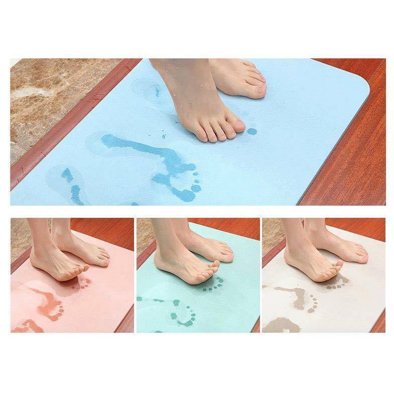 Bạn sẽ cảm thấy thật phiền toái khi bước từ nhà tắm ra với đôi chân ướt, dù đã lau chân rồi nhưng vẫn để lại những vệt nước dưới sàn, thầm chí với các bé con chưa học được thói quen chùi chân khi rời khỏi phòng tắm đã chạy ra ngoài thì khả năng bị ngã trượt ngã luôn khiến bạn phải lo lắng. Vì vậy chúng tôi xin giới thiệu đến bạn sản phẩm Thảm đá lau chân Nhật Bản với khả năng thấm hút tuyệt vời giúp làm khô đôi chân một cách nhanh chóng