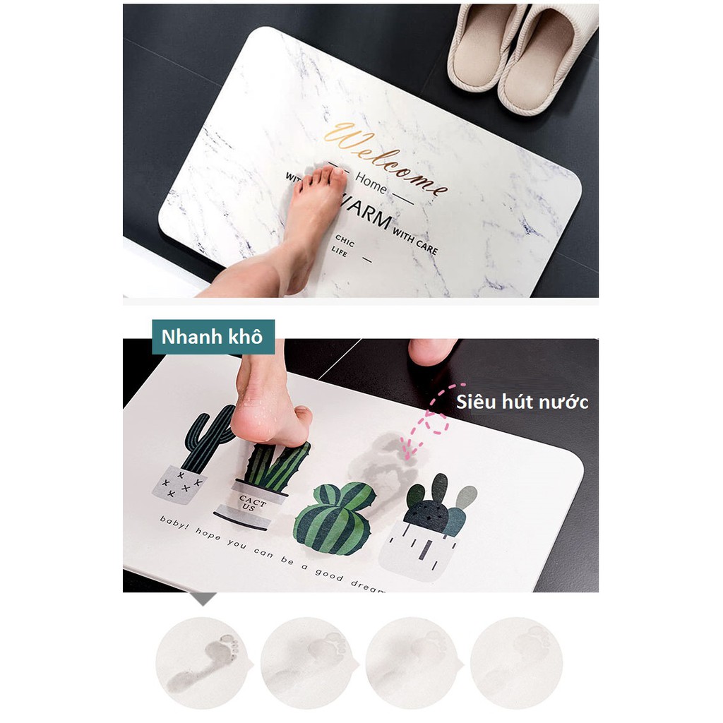 Thảm đá lau chân, thảm cứng chùi chân, siêu thấm nước cao cấp chống trơn trượt an toàn, nhanh khô, tiêu chuẩn Nhật Bản