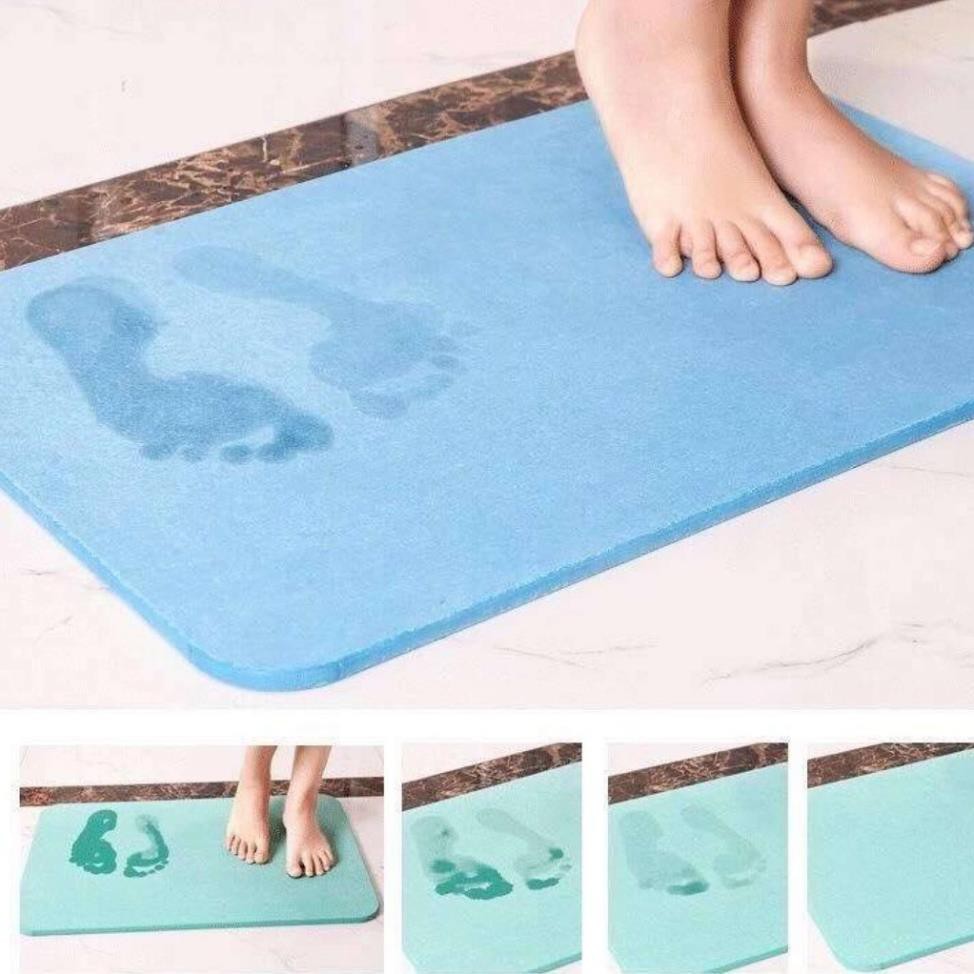Thảm đá siêu thấm Nhật Bản hút nước tự khô cực nhanh chuyên dùng để thấm khô nước bàn chân sau khi ra khỏi nhà tắm, nhà vệ sinh hoặc dùng để thấm khô chân tùy theo nhu cầu sử dụng. Thảm được làm từ vật liệu Diatomite, 1 vật liệu hóa thạch đặc biệt, có vô vàn lỗ với kích thước siêu nhỏ chỉ 0.1 – 0.2µm (Micrômét), nên thấm nước và bay hơi cực nhanh cho bề mặt thảm luôn khô thoáng.Thảm lau chân siêu thấm