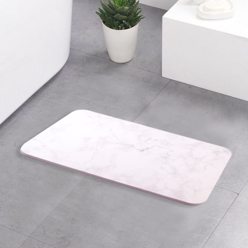 Thảm đá siêu thấm là một loại thảm cứng với khả năng thấm hút nước cực nhanh giúp cho miếng thảm luôn được khô ráo và không để lại mùi hôi như các loại thảm thông thường khác. Thảm được làm bởi hóa thạch tảo, rong rêu nên có khả năng chống mốc và vi khuẩn phát triển nên rất an toàn cho người sử dụng. Với chất liệu thấm hút siêu nhanh do các lỗ li ti chỉ có kích thước từ 0.1-0.2 micromet nên thảm giải phóng nước trên bề mặt siêu nhanh giúp cho chiếc thảm luôn trong trạng thái khô ráo.
