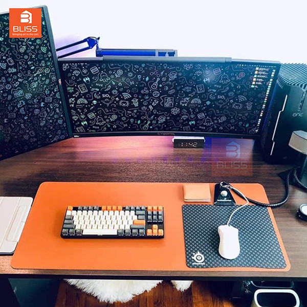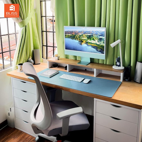 * GỢI Ý: Không nhất thiết phải chọn loại phủ kín mặt bàn làm việc. Thảm da nhỏ vừa phải, vừa đủ cho khu vực tay hoạt động trên bàn, sẽ giúp thảm da/ bàn phím/ chuột trở thành điểm nhấn cho bàn làm việc.
