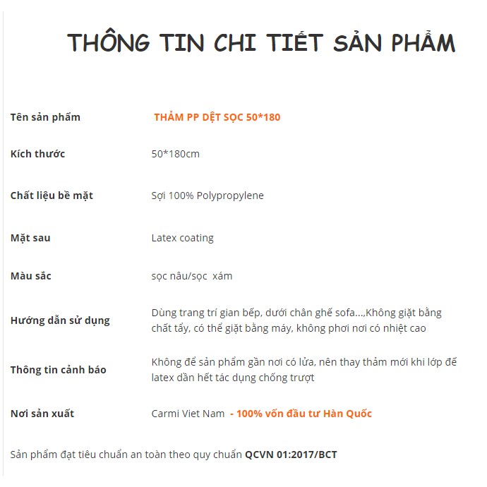 Giới thiệu Thảm Dài PP Thương Hiệu Carmi 180x50 cm Siêu đẹp