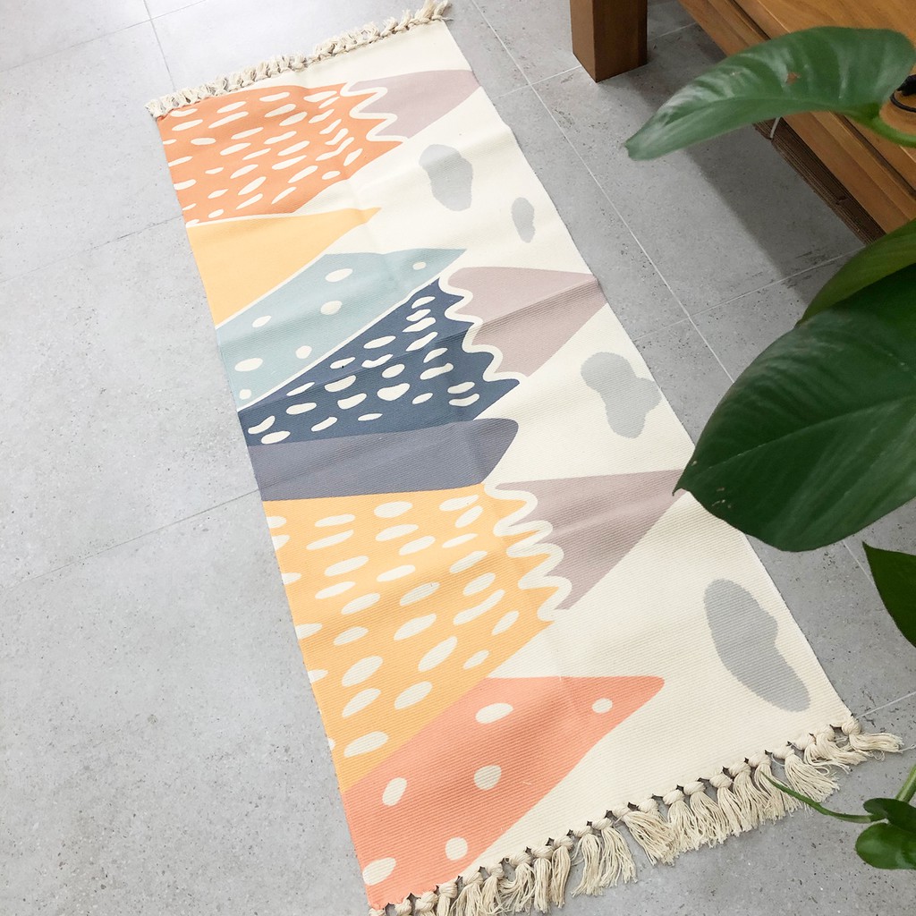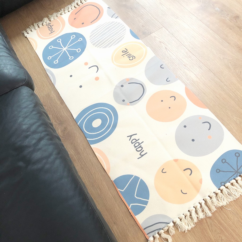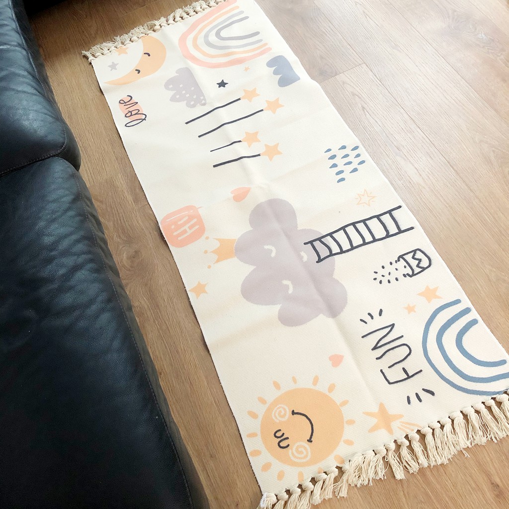 Thảm dài tua rua hoạ tiết vui nhộn 60x150cmChất liệu: cotton poly, mềm, êm chân