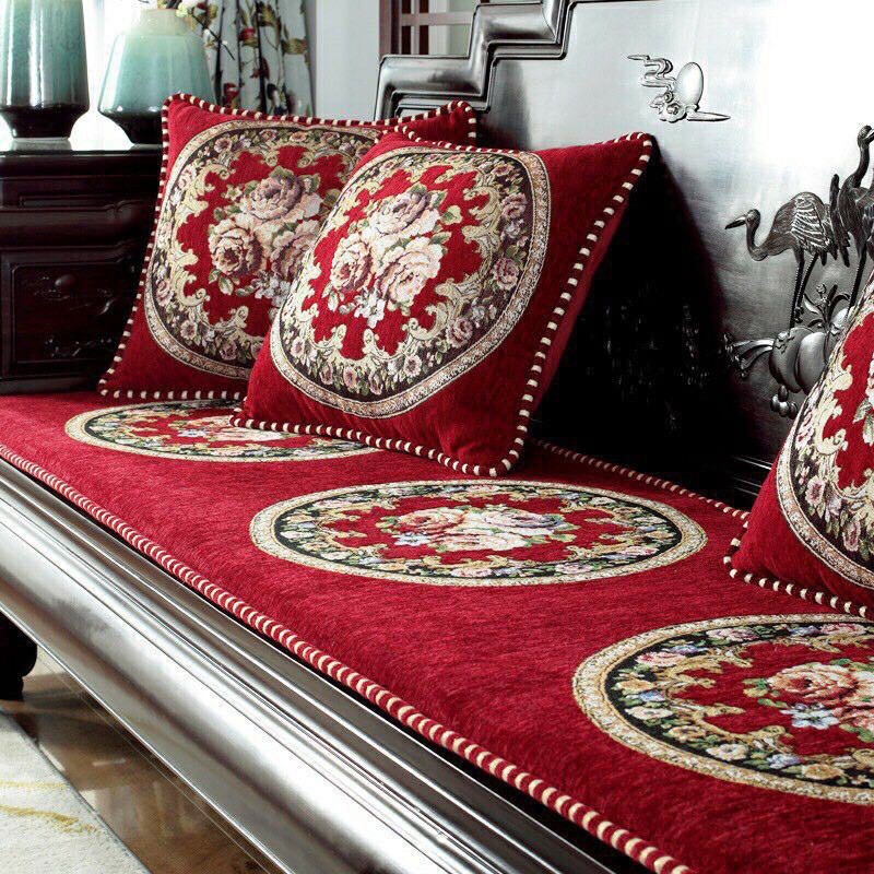 + Vải lụa gấm cao cấp vô cùng dẻo dai, mềm mại được thêu hoa văn Tây Âu vô cùng tinh tế, sắc nét, đẹp mắt. Hoa văn được thêu bằng vi tính tỉ mỉ, chi tiết, chắc chắn.