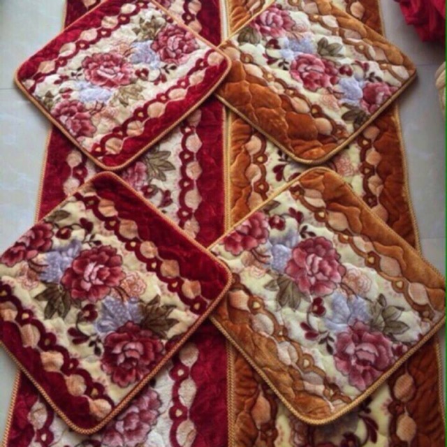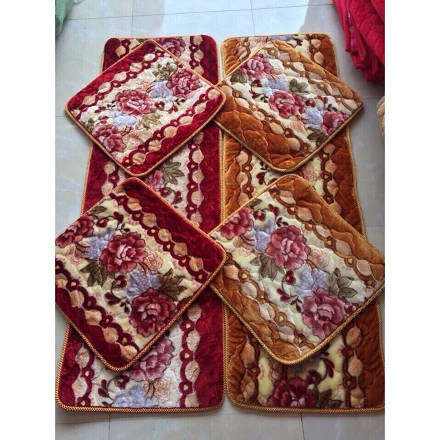 Bộ thảm ghế nhung trần hoa cao cấp (Bộ gồm 1 thảm dài 2 thảm vuông - hoặc bạn có thể chọn mua 6 thảm vuông)