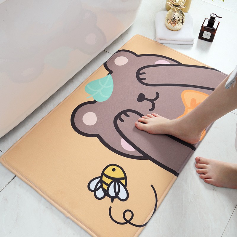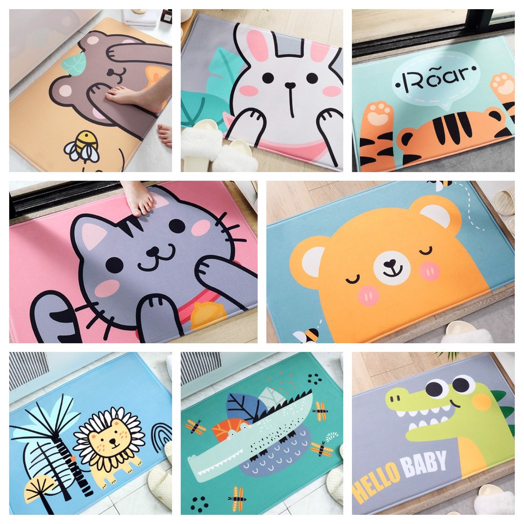 Thảm Hoạt Hình Lau Chân Nhung Chần Bông Dày Bộ Động Vật Cute dùng làm thảm trang trí để cửa cửa ra vào, phòng khách, phòng ngủ, cửa nhà vệ sinh,Ưu điểm: