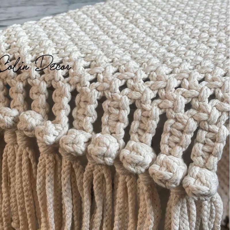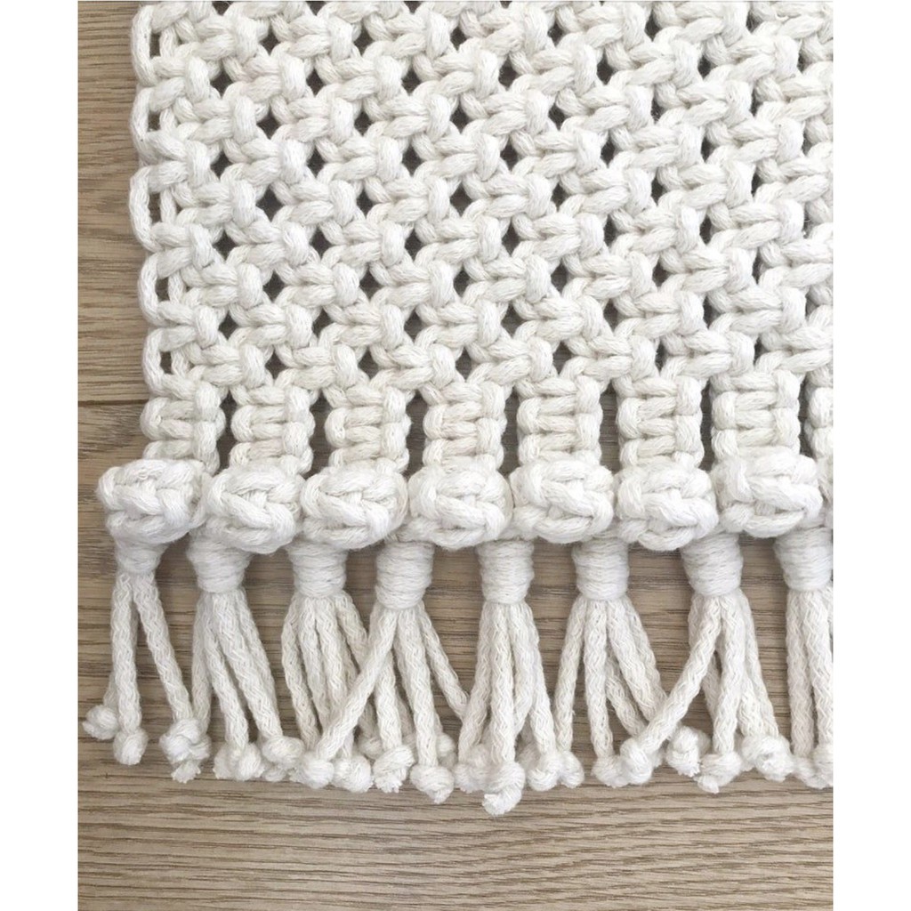 Thảm/khăn macrame ngang ( làm thêo kích thước yêu cầu)kích thước khách yêu cầu : ngang 25cm dài 1400