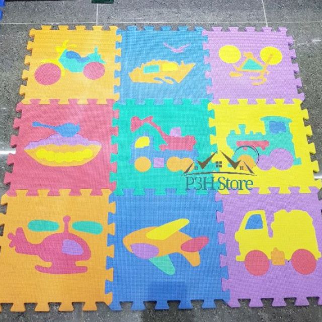 Mỗi miếng xốp tương ứng với 1 phương tiện giao thông như: tàu thủy, máy bay….và màu sắc khác nhau cho các bé vừa chơi vừa học.