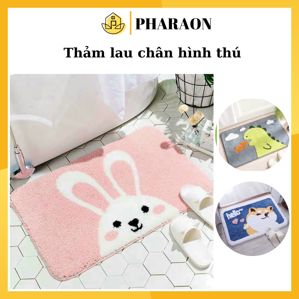 Thảm lau chân 3D hình thú, Thảm chùi chân lông cừu siêu xinh thấm hút nước tốt, mặt sau chống trơn trượt 40x60 - PHARAON