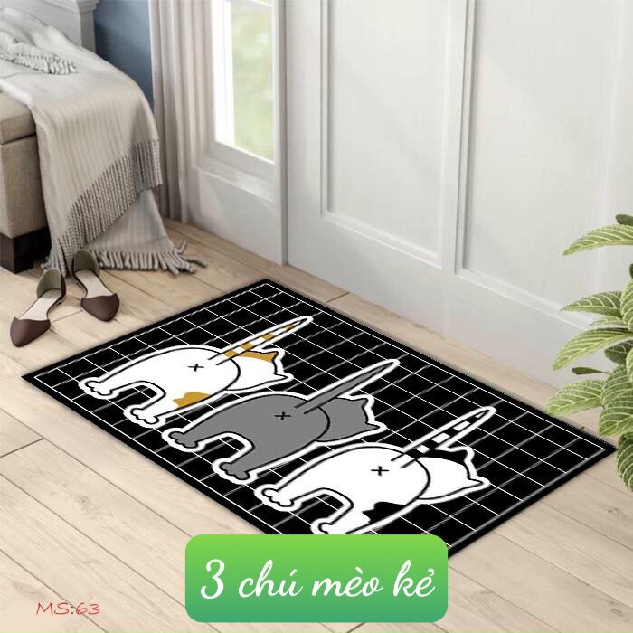 Thảm lau chân 40x60cm chống trượt thấm nước,có chọn mẫu-mẫu ba chú mèo kẻ#thamlauchanmaubachumeoke