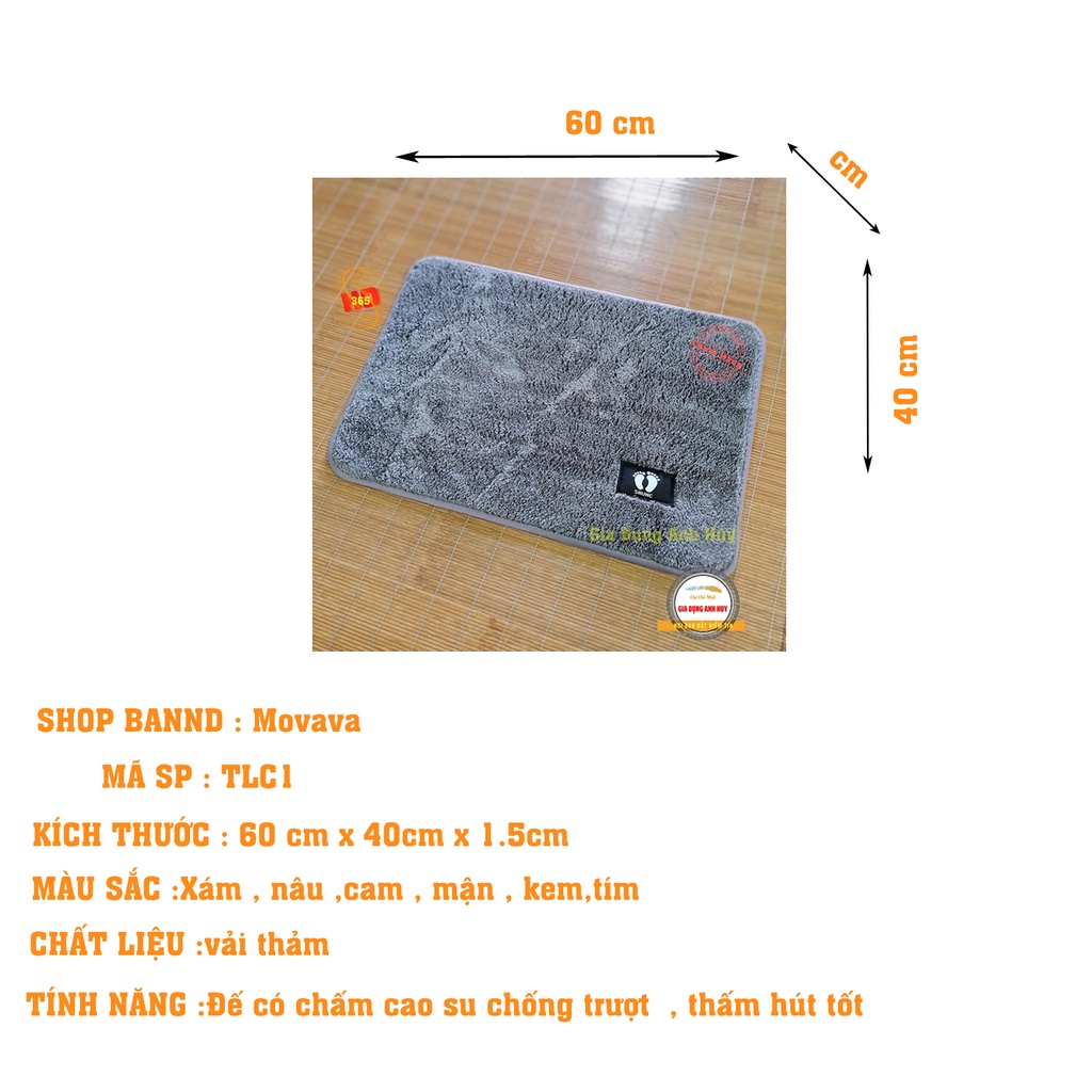 ✔ Thảm Lau chân thấm nước Bề mặt thảm cực kì mềm mại do thảm được làm từ sợi lông tổng hợp tự nhiên cao cấp cotton, có khả năng thấm nước tốt, làm sạch đôi bàn chân của bạn, mang lại cảm giác cực kì dễ chịu. Dùng được cho nhà tắm, thảm phòng khách, phòng ngủ, văn phòng công ty, xe hơi.