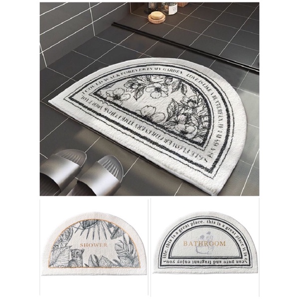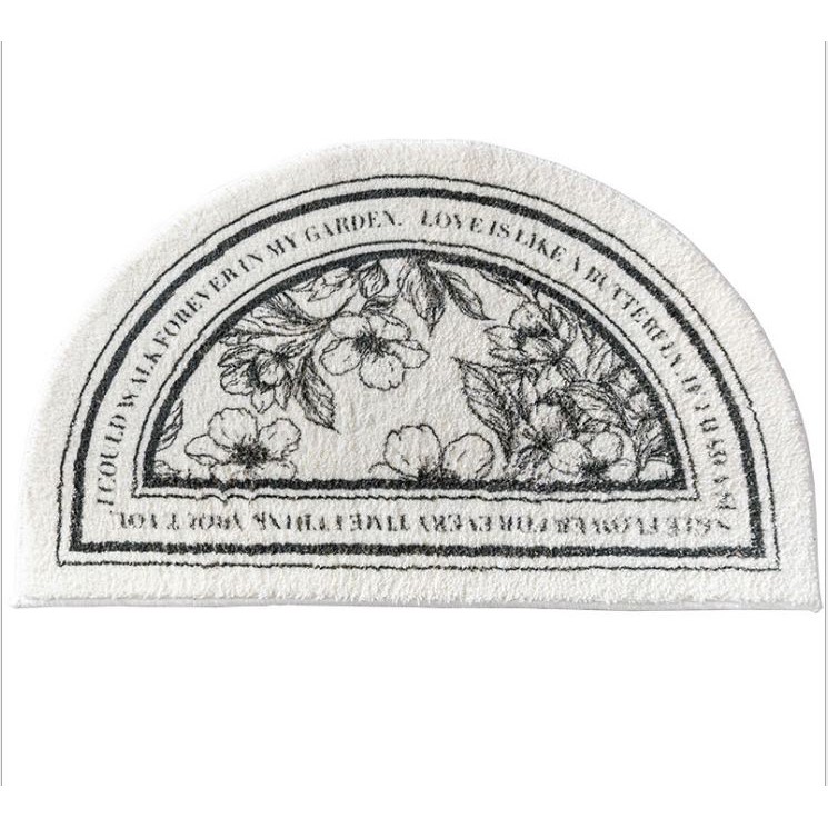 Thảm lau chân / chùi chân dày dặn lông mềm mịn hình bán nguyệt hoạ tiết đơn giản sang trọng chất liệu cao cấp