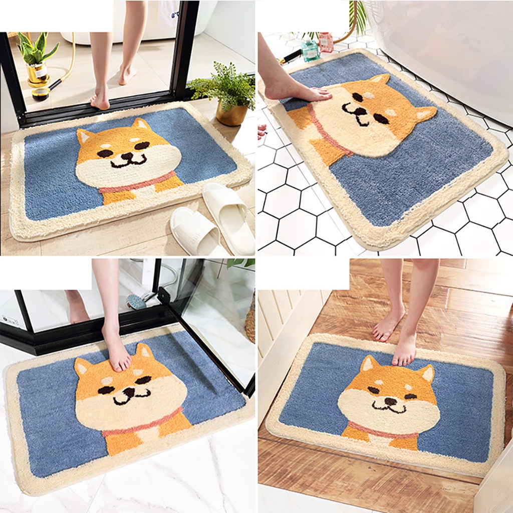 Giới thiệu Thảm Lau Chân Chùi Chân Nhà Tắm, Cửa Phòng Khách CAO CẤP Chống Trơn Trượt - chủ đề Shiba TCCC02