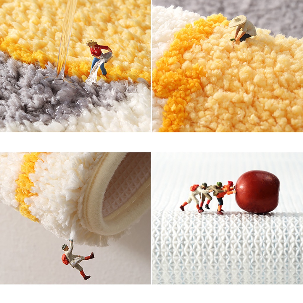 - Tác dụng chống trượt của phần đế cao su sẽ bị giảm khi có nước trên bề mặt. Hãy lau khô sàn trước khi đặt thảm lên.