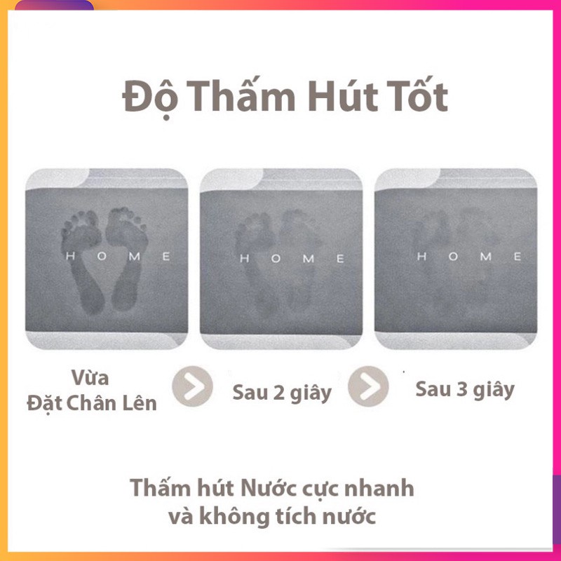 ✔️Không trơn trượt, an toàn cho người già và trẻ nhỏ. Vật liệu Diatomite với những lỗ siêu nhỏ có khả năng tự thấm, hút ẩm siêu nhanh và ngay lập tức giải phóng lượng ẩm này vào không khí.