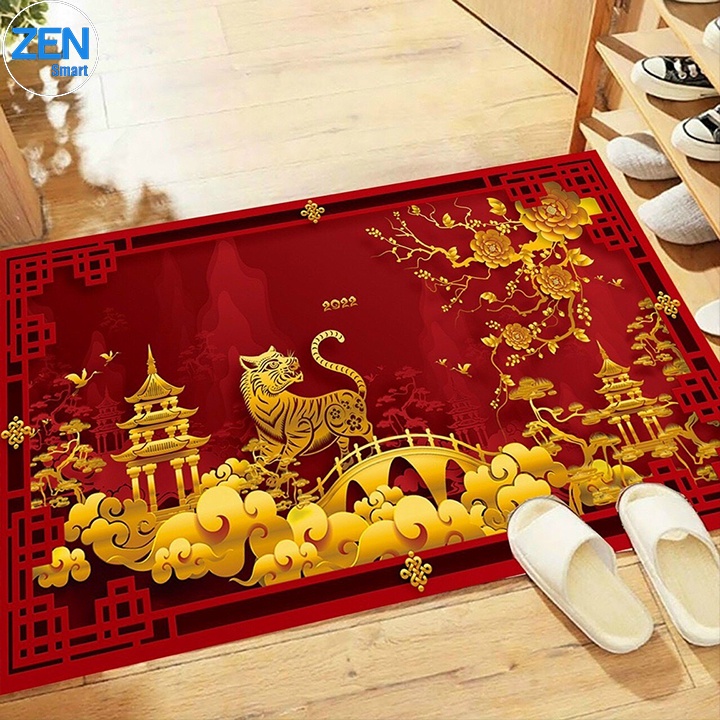 Thảm lau chân, chùi chân, trải sàn chống trơn trượt mùa Tết 2022 cao cấp - Họa tiết Tết nổi tật