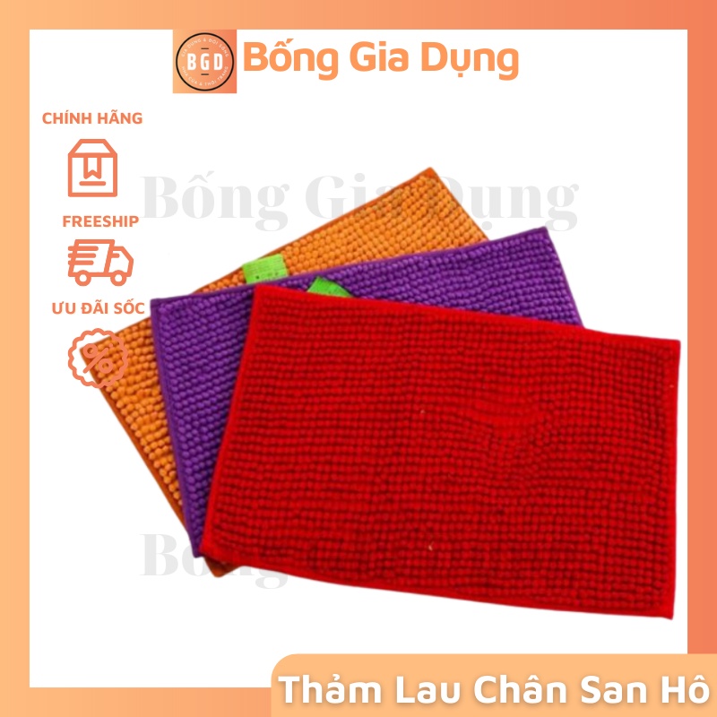 Thảm Lau Chân , Chùi Chân Trải Sàn Thấm Nước Sợi San Hô Kích Thước 48 x 30cmThảm lau chân thấm nước sợi san hô : Chất liệu sợi cotton bông tổng hợp bền đẹp, dễ làm sạch, nhanh khô cho thời gian sử dụng lâu dài. Chuyên dùng trước cửa phòng tắm, ngoài dân để lau chân ướt.