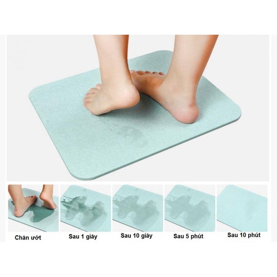 ❶ Siêu thấm hút: Đặt đôi bàn chân ướt lên tấm thảm cứng, nước trên đôi bàn chân sẽ được thấm hút hoàn toàn vào thảm do vật liệu diatomite có hàng vô số lỗ nhỏ rỗng thẳng đứng hút và thải ẩm vào không khí, đôi bàn chân được hút khô rất nhanh.