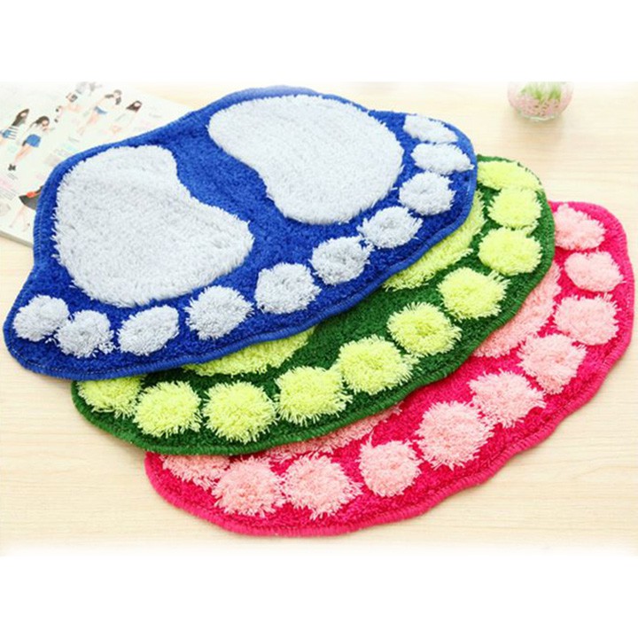 Thảm lau chân hình bàn chân được thiết kế với kiểu dáng hình bàn chân sống động, nhiều màu sắc.Thảm được làm bằng chất liệu lông siêu thấm hút, mềm mại, luôn giữ được bề mặt lông thông thoáng và chống trơn trượt.
