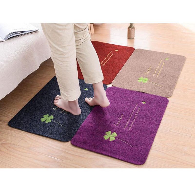 - Thảm lau chân hình chiếc lá dùng trang trí phòng khách, phòng ngủ, phòng tắm ... với thiết kế màu sắc họa tiết cỏ 4 lá bắt mắt.- Thấm nước tốt, nhanh khô, chống trơn trượt.
