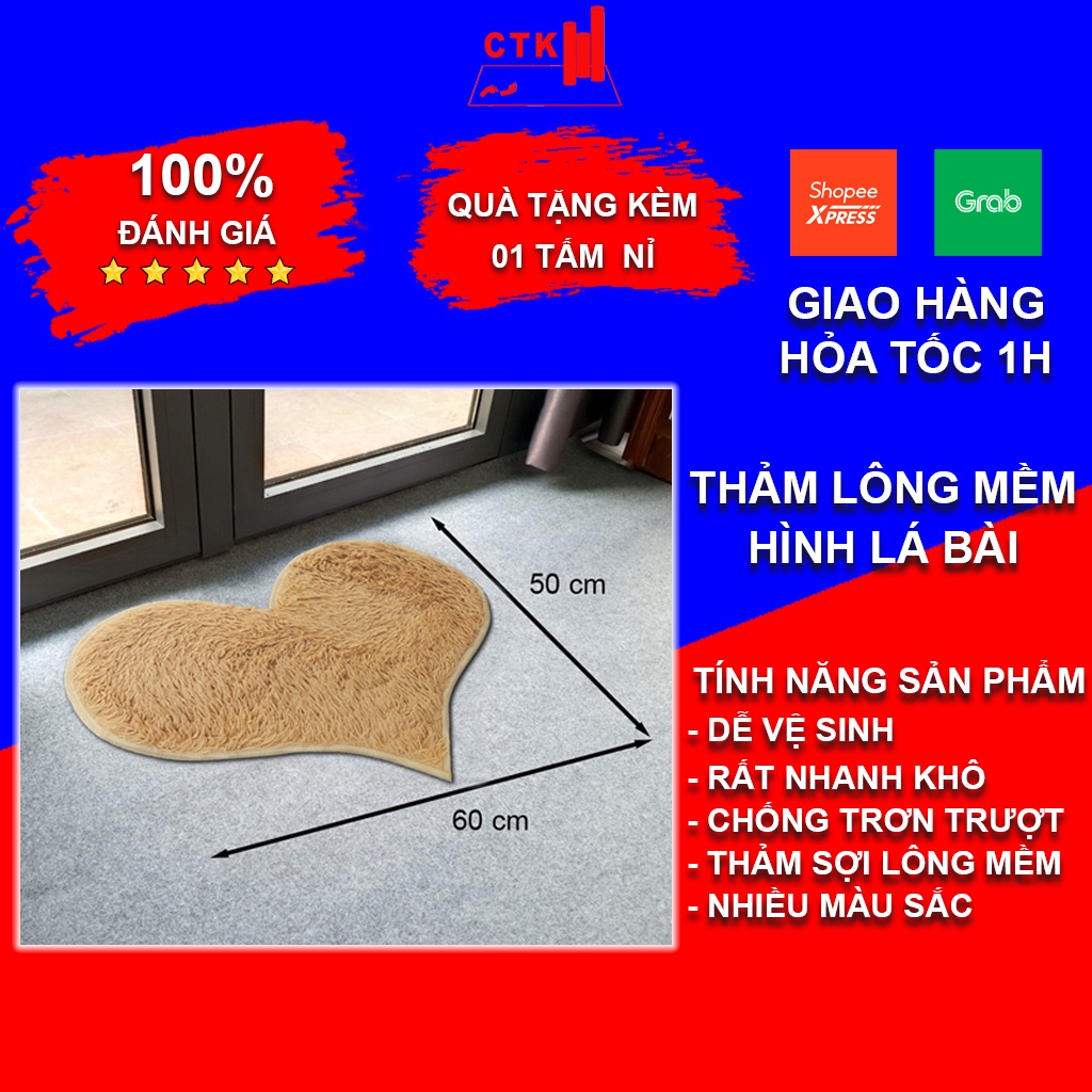 🎯 Chất liệu sản phẩm Thảm lau chân hình lá bài, thảm lông mềm chống trượt